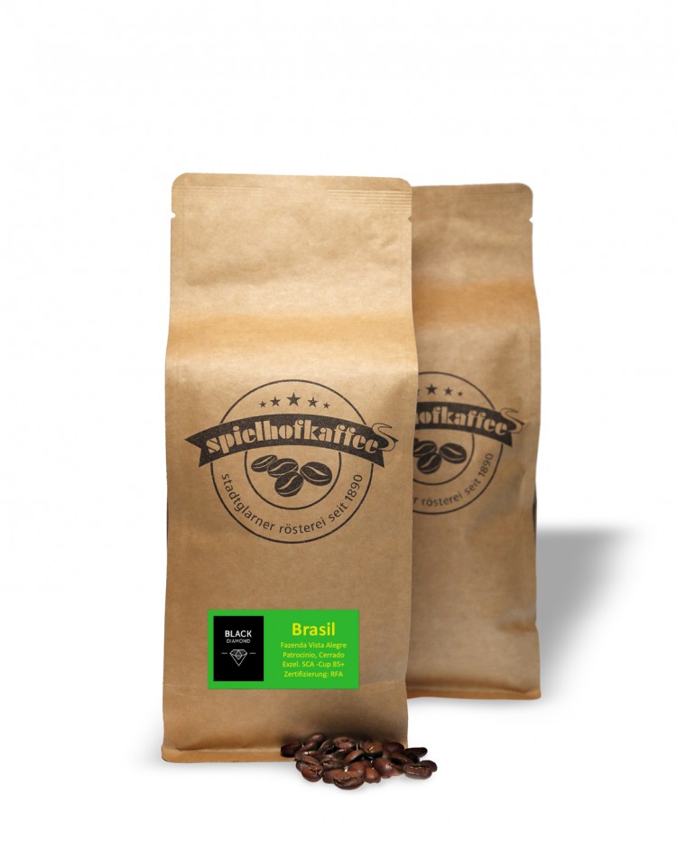 Dieser neue Brasilianer, ein Arabica der Varietäten Caturra und Catuai, wurde speziell entwickelt! Schon bei der Bepflanzung wurde darauf geachtet, wie der Kaffee am Ende in der Tasse sein muss! Angebaut wird er im Cerrado-Gebiet, in Patroncinio. Der Name Black Diamond ist nicht per Zufall gewählt, er steht für den perfekten Diamanten! Dieser Kaffee besticht durch seine sehr feine Säure und die kräftigen dunklen Aromen! Bei SCA Cupings erziehlt er 85+ Punkte!